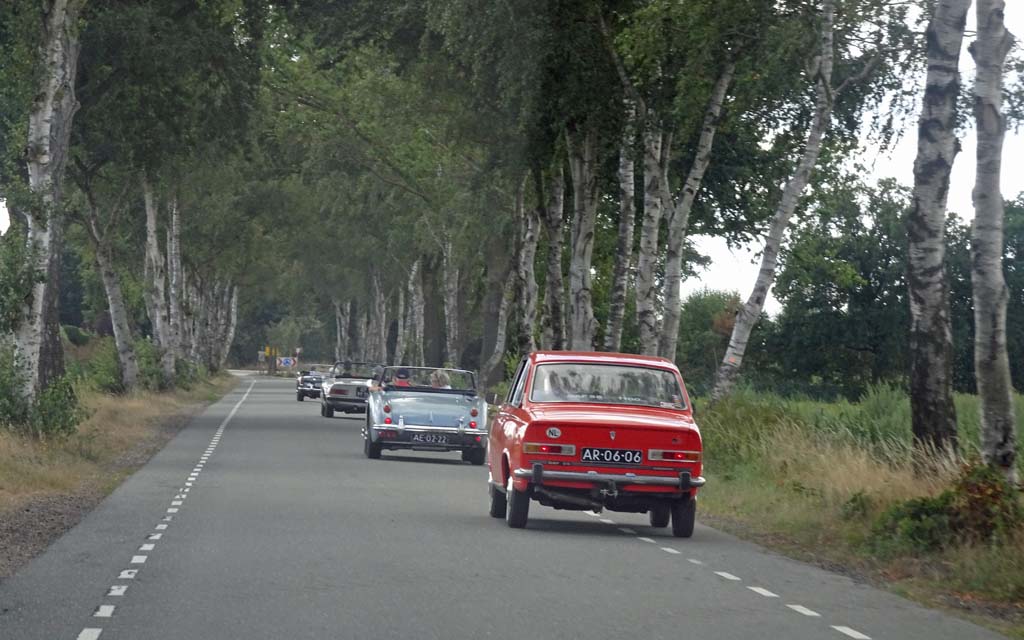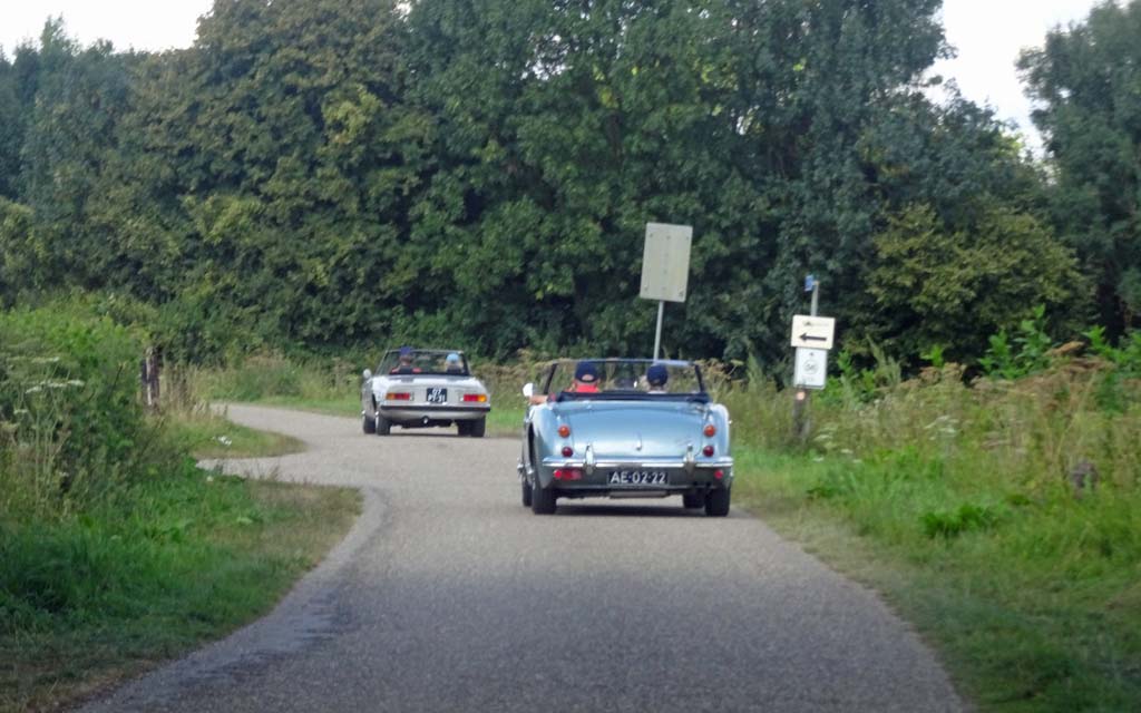 Met het heerlijke weer van deze laatzomerse donderdag kon het dak open blijven en dat was voor mij een bijzondere sensatie. Aan het zelf sturen in de openlucht werd een vierde dimensie toegevoegd in de vorm van de geurtjes, de geluiden, de wind en de zon. Bovendien is het beteugelen van een meer dan 50 jaar oude sportauto wel even iets anders dan achter het stuur van een modern vehikel kruipen. Geen stuurbekrachtiging, geen rembekrachtiging en een eerste versnelling die niet is gesynchroniseerd; het maakt het rijden er een stuk avontuurlijker op. En zo leer je de geneugten van het autorijden pas echt kennen. De rit zelf voerde grotendeels door het Noord Limburgse landschap dat er door de opkomende herfstkleuren heel fraai bij lag. Wel weer typisch Limburgs schijnt het niet vooraf aankondigen van wegopbrekingen te zijn. Maar we zijn er allemaal heelhuids vanaf gekomen.