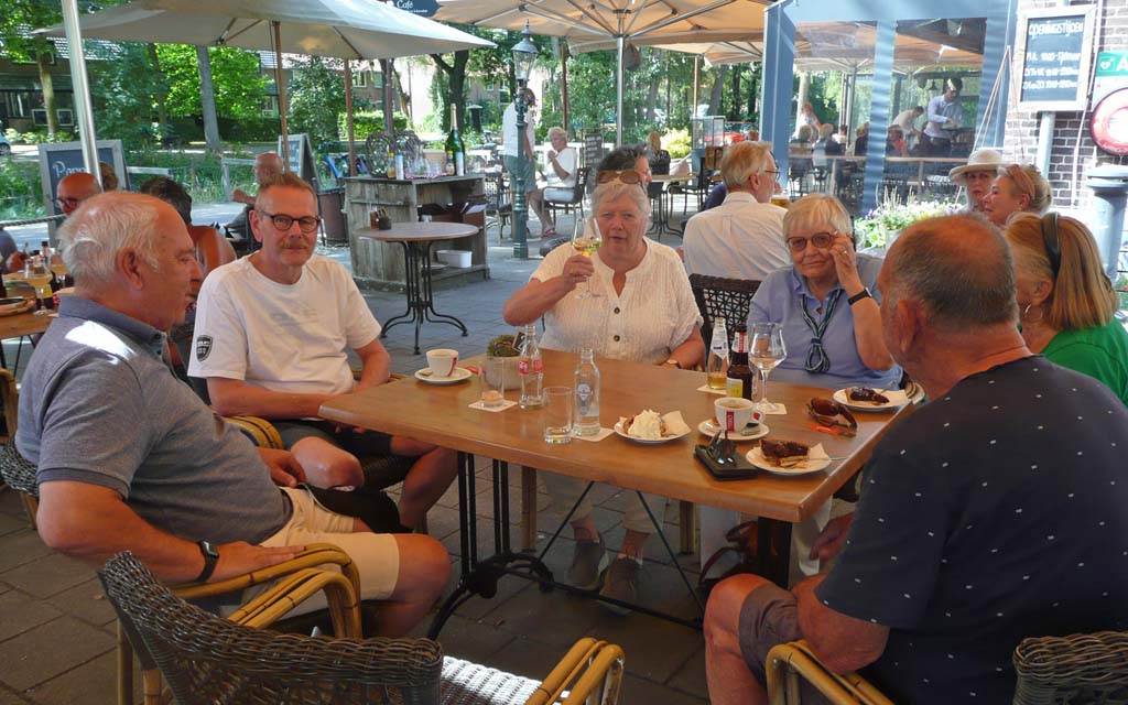 De MG is behoorlijk comfortabel en voelt heel solide aan. In sommige bochten merk je dat het onderstel hard moet werken om de boel in het gareel te houden, maar dat verhoogt de pret alleen maar. Tijdens het toeren realiseerde ik mij ineens dat het rijden in een oldtimer hard werken is. Mijn petje af voor jullie, medeleden van ons clubje, omdat het elke rit weer een lekkere uitdaging voor lijf en geest is. Na ruim 90 kilometer sturen -met een tussenstop in het pittoreske Griendtsveen- ging een koud biertje er dan ook soepel in.